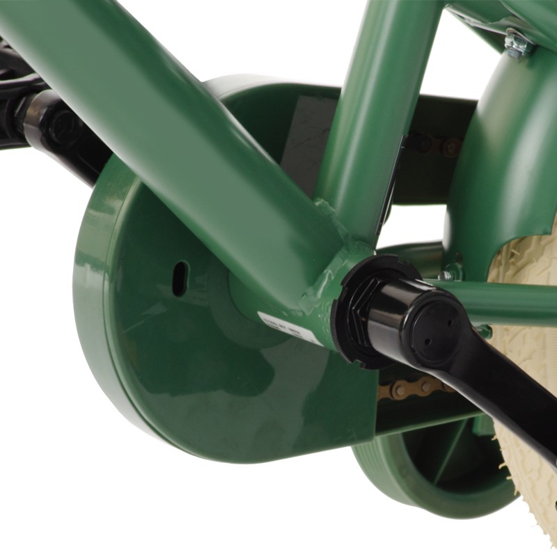 Bicicleta vine echipata cu roti ajutatoare care ofera sprijin suplimentar in timpul invatarii mersului pe doua roti. Acestea sunt detasabile si pot fi indepartate pe masura ce copilul capata incredere si echilibru.