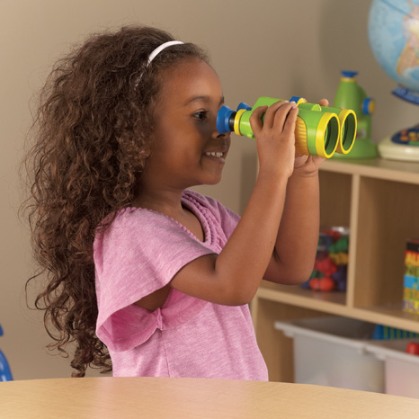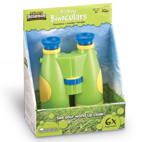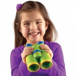 Binoclul este realizat din plastic rezistent, in culori vesele si mareste de 6 ori.