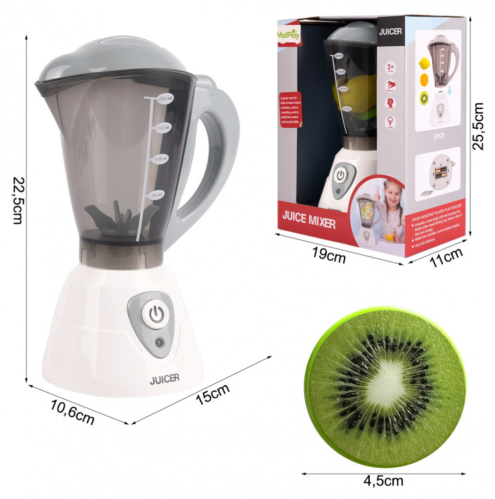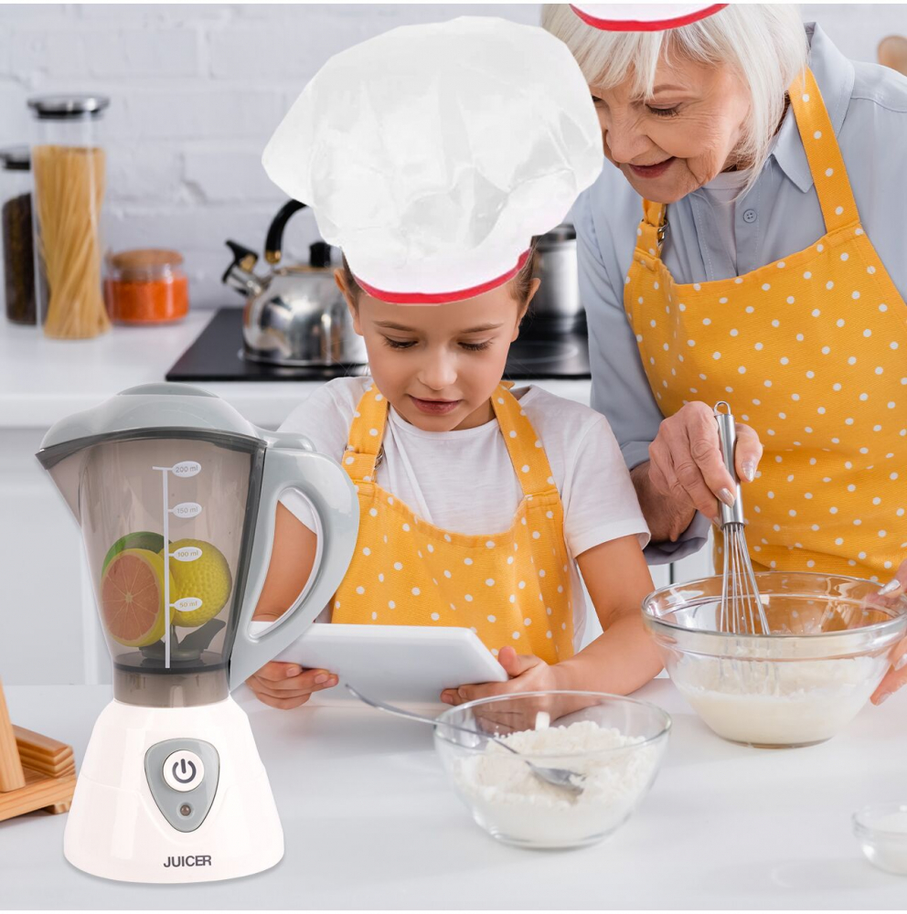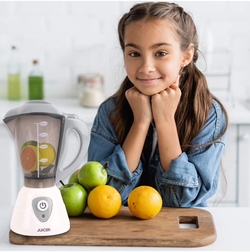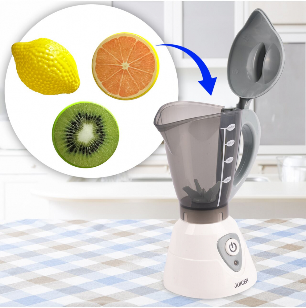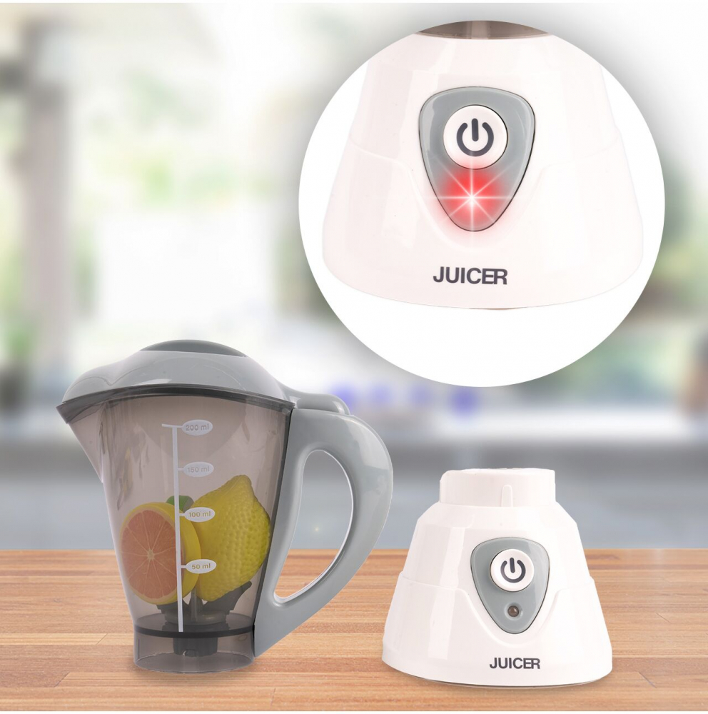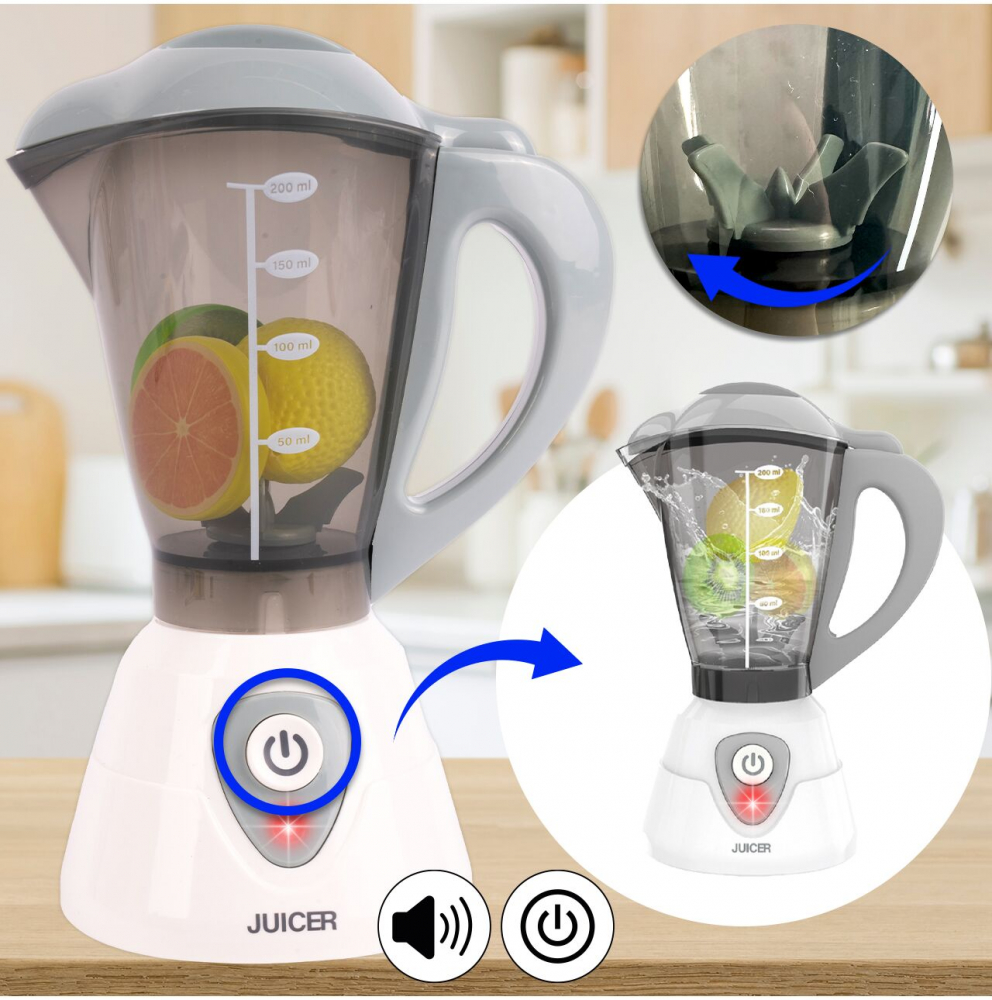 La apasarea unui buton, blenderul începe să se rotească în timp ce emite sunete realiste, astfel încât copiii să poată juca propriile scene din bucătărie.