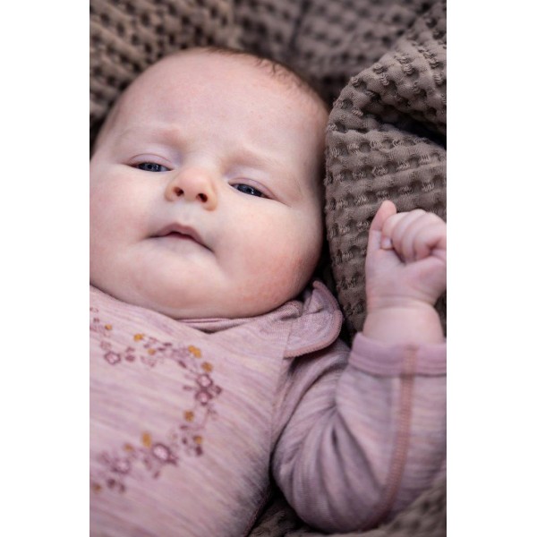 Body Celavi din lana merinos si bambus cu volanase si capse Deauville Mauve 100 cm