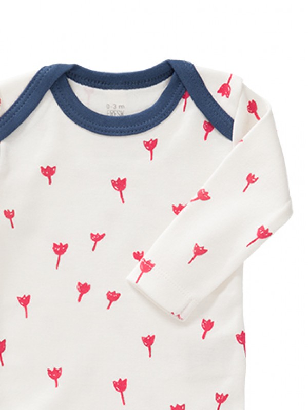 Body maneca lunga 0-3 luni din bumbac organic model Tulip red