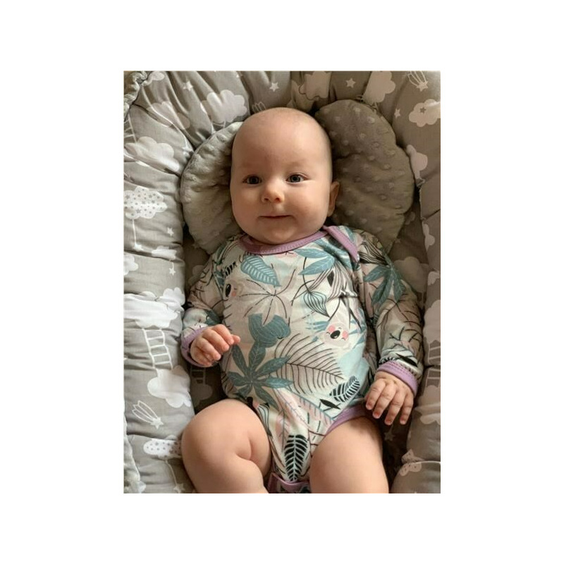 Body-ul este imprimat cu un motiv floral pentru copii.
