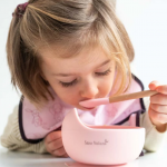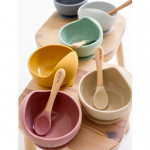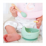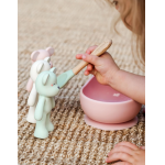 Bol anti-alunecare din silicon alimentar si lingurita Light Rose