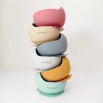 Un bol din silicon cu o ventuză practică dedesubt pentru a o fixa pe masă. Este la adăpost de bebeluși!