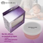 Bol din silicon cu ventuza si capac AppeKids Old Rose