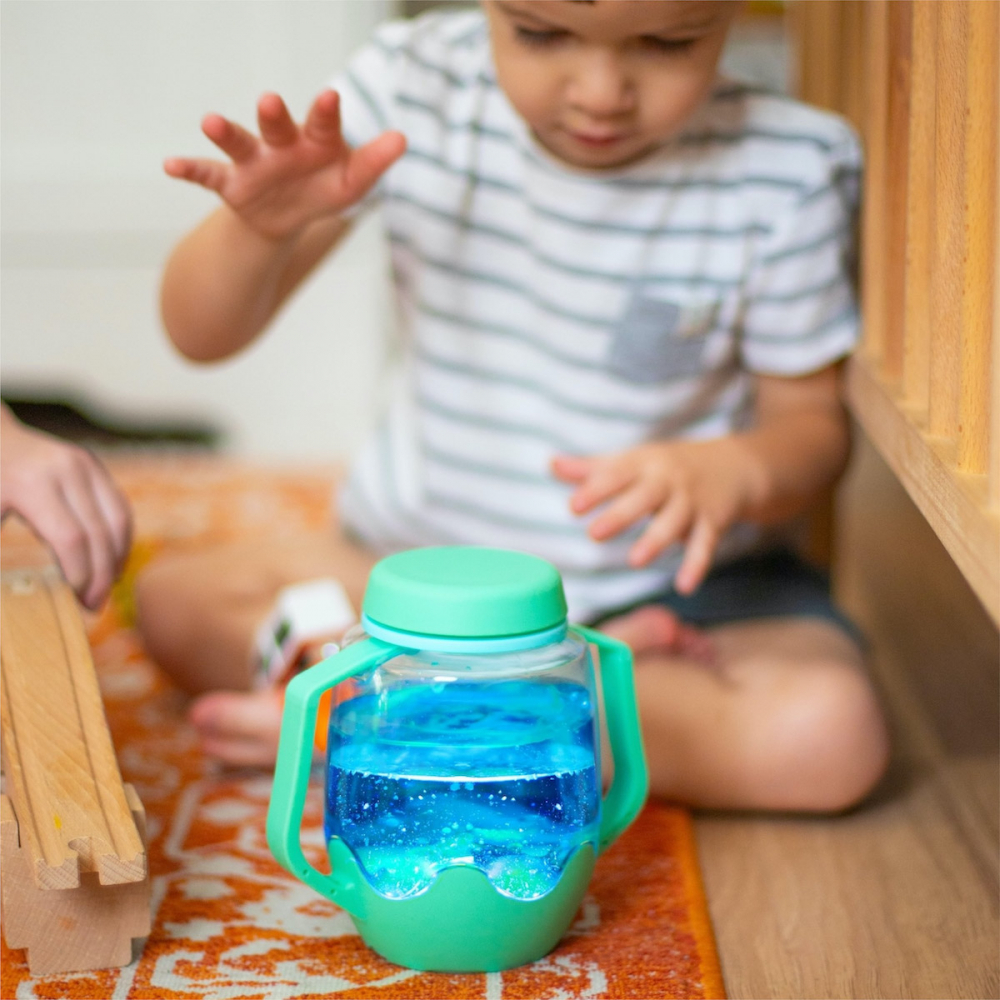 Confort liniștitor într-un borcan. Stralucirea blânda din borcanul de joacă senzorială poate fi incredibil de liniștitoare pentru cei mici.