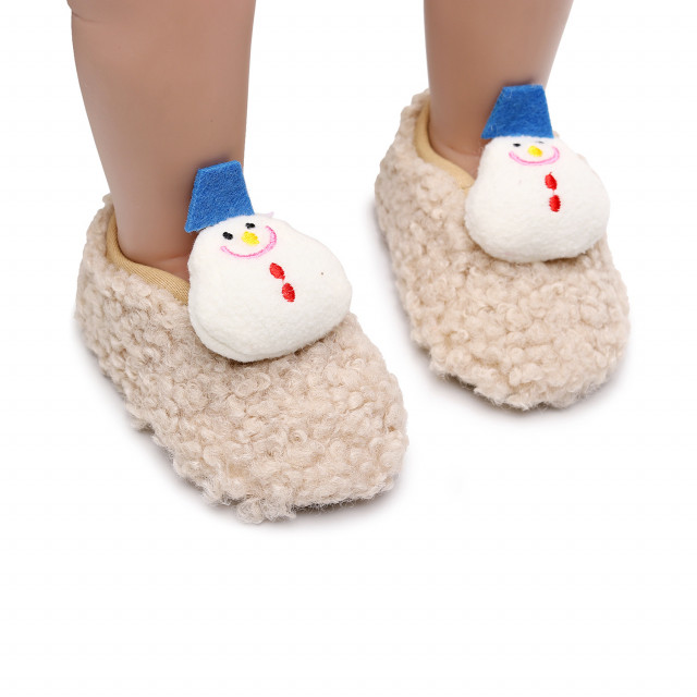 Botosei pentru bebelusi, din material textil tip blanita, cu un om de zapada aplicat.