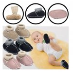 Acesti botosi drăguți din piele de miel păstrează picioarele bebelușului calde în zilele reci.