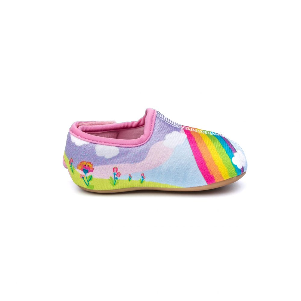 Model in stil casual pentru bebelusi, cu o nota moderna data de imprimeul curcubeu.