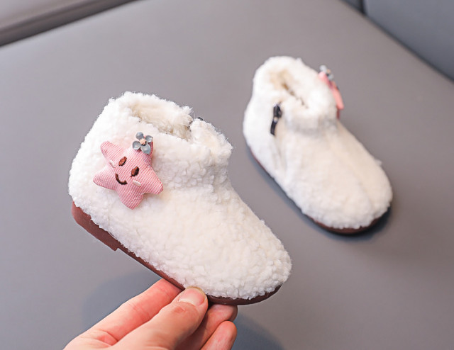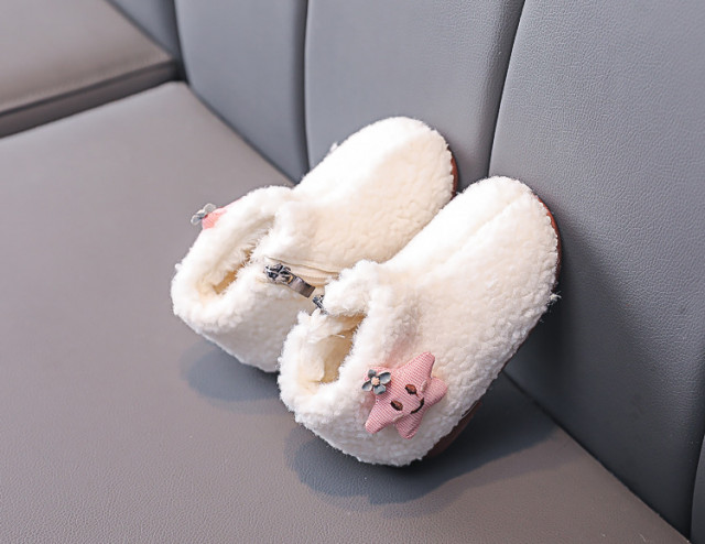 Botosei din blanita pentru fetite, se inchid cu fermoar intr-o parte si au aplicata o steluta roz.