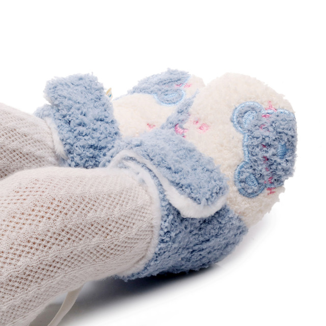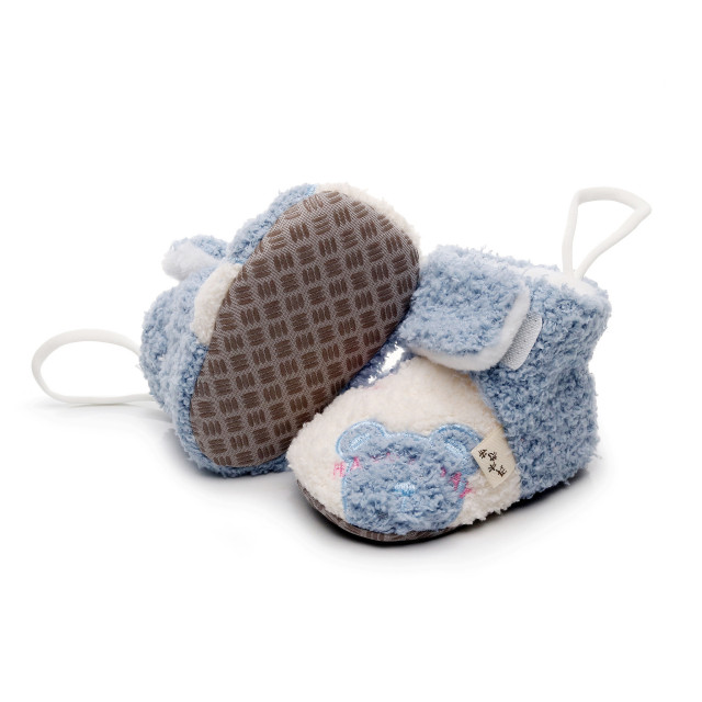 Botosei imblaniti pentru baietei, din blanita, cu un cap de ursulet aplicat intr-o parte, se inchid cu bareta lata cu arici.