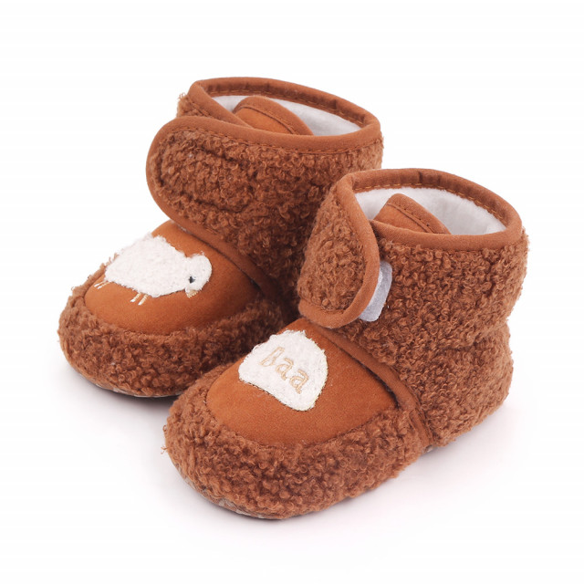 Botosei pentru bebelusi, din material textil, cu blanita aplicata si cu o oita si inscriptie "Baa" in fata. Se inchid cu bareta cu arici facilitand incaltarea cu usurinta.