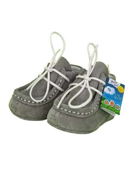 Botosei Mocasini Barefoot pentru copii Velur Gri Shark din piele naturala marime 18