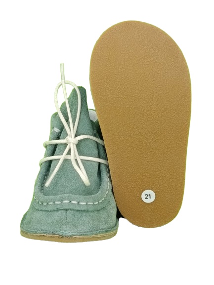 Botosei Mocasini Barefoot pentru copii Velur Verde Oxide din piele naturala marime 16