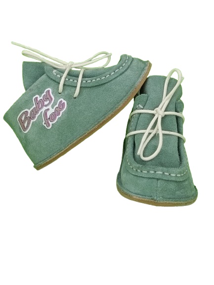 Botosei Mocasini Barefoot pentru copii Velur Verde Oxide din piele naturala marime 18