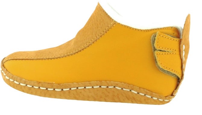 Talpa cusuta manual, este confectionata din spalt velur (piele intoarsa), cu insertii de cauciuc antiderapant, care nu permite alunecarea celor mici.
