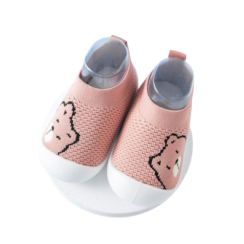 Botosei cu talpa antiderapanta pentru copii, cu un cap de ursulet brodat.
