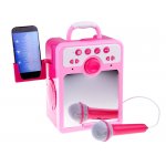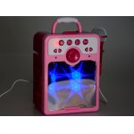 Boxa disco portabila karaoke pentru copii roz, echipata cu microfon, bluetooth, dimensiune 31x28.5x12.5 cm