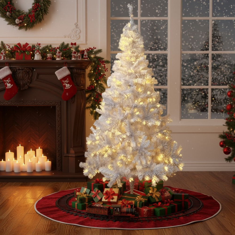 Adu magia iernii in casa ta cu acest brad artificial alb de 195 cm, o alegere eleganta si moderna pentru decorul de Craciun.