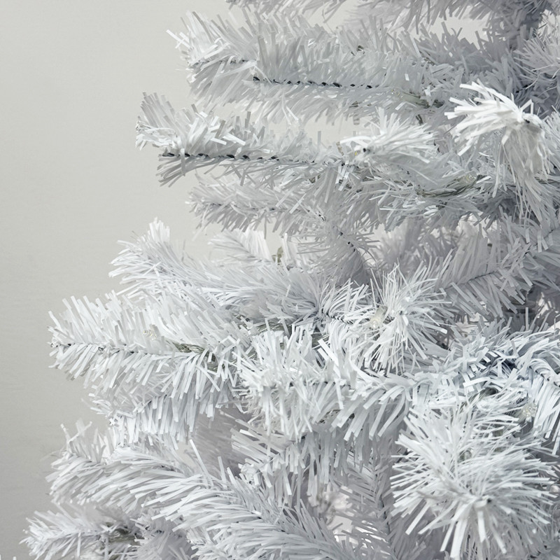 Confectionat din PVC alb premium, bradul reproduce aspectul unui brad natural acoperit de zapada, avand o textura bogata si realista.