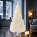 Brad alb artificial iluminat, 195 cm, 360 led-uri alb cald, 936 ramuri dense, suport metalic