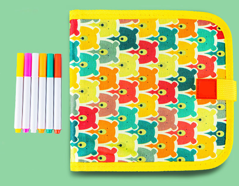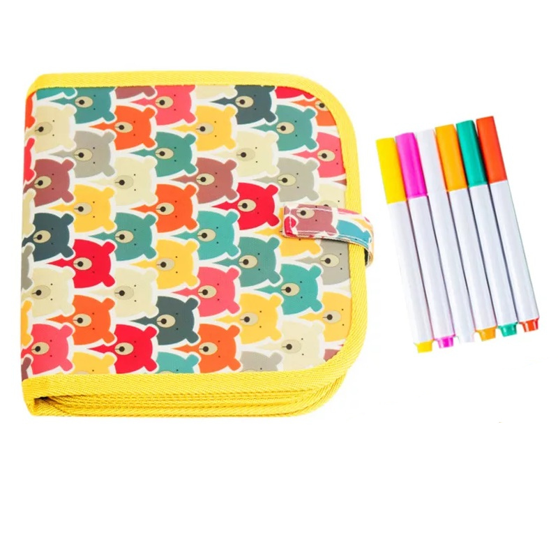 Brosura de desenat reutilizabila cu 10 pagini si 6 carioci Yellow