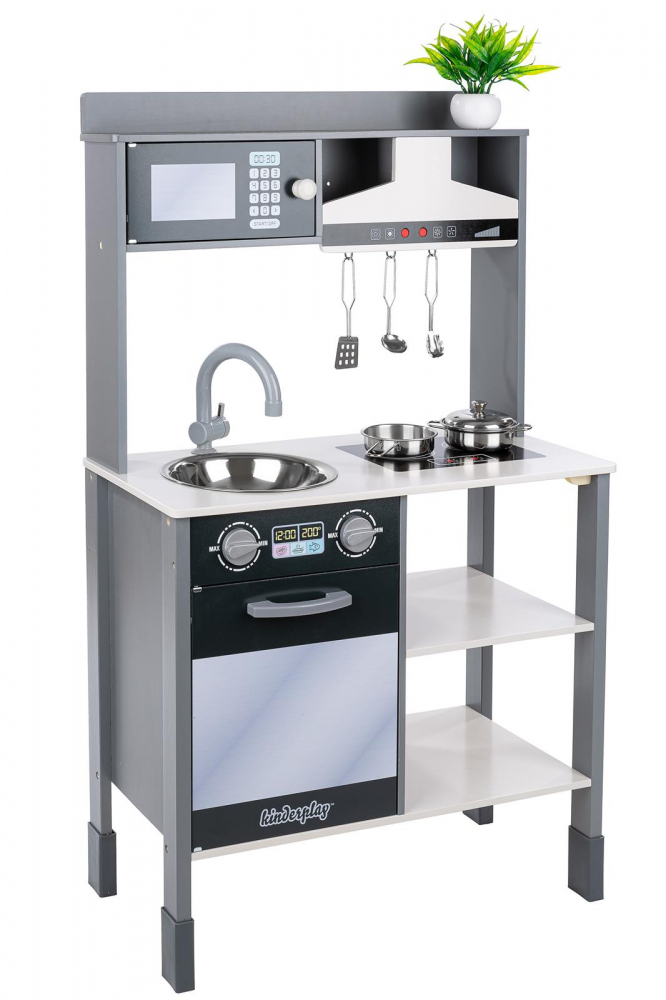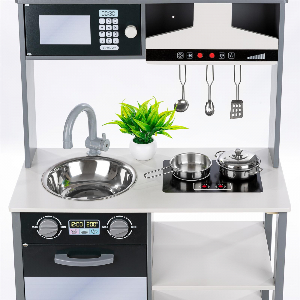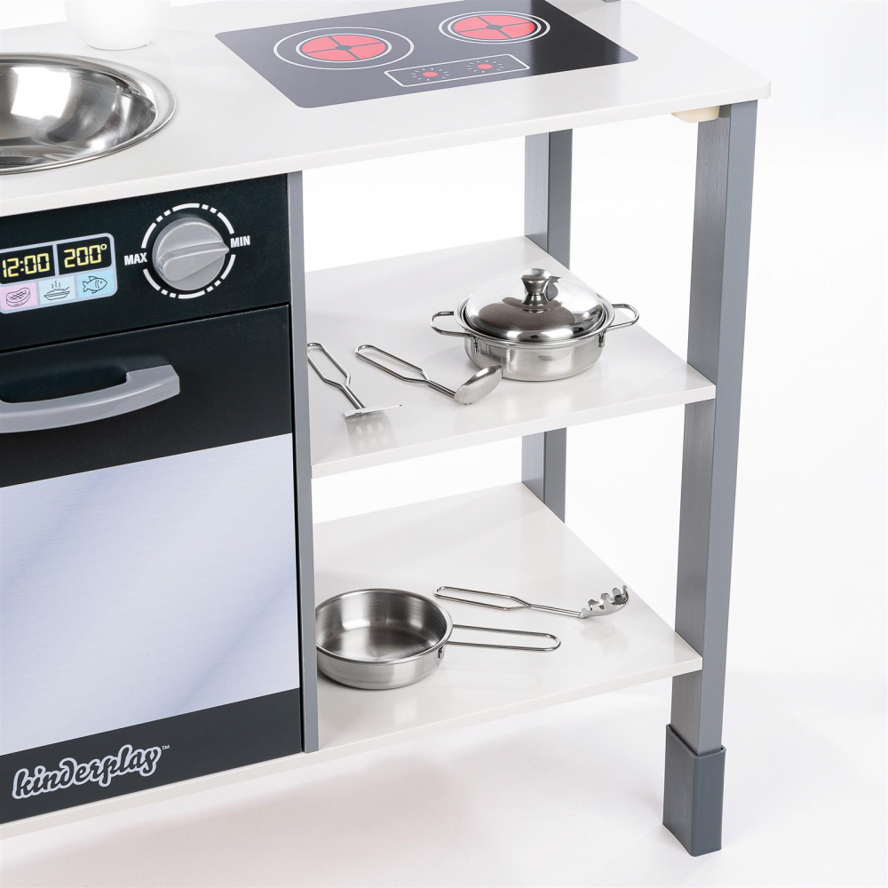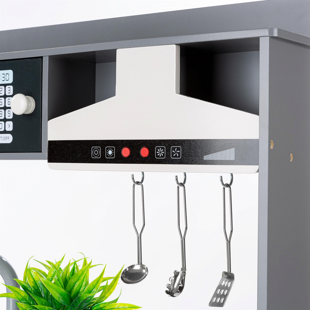 * Bucataria vine cu un kit complet de accesorii pentru a le oferi copiilor o experienta autentica de gatit.