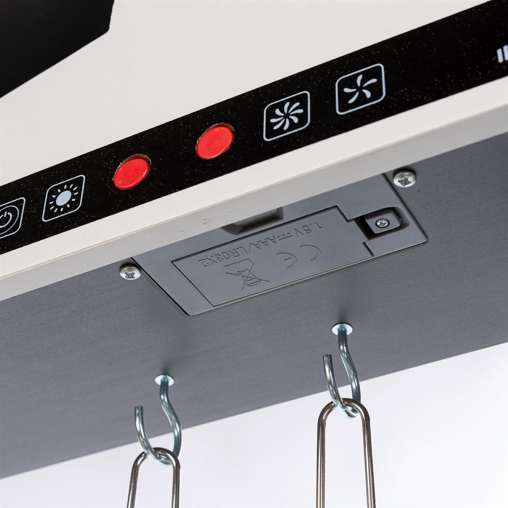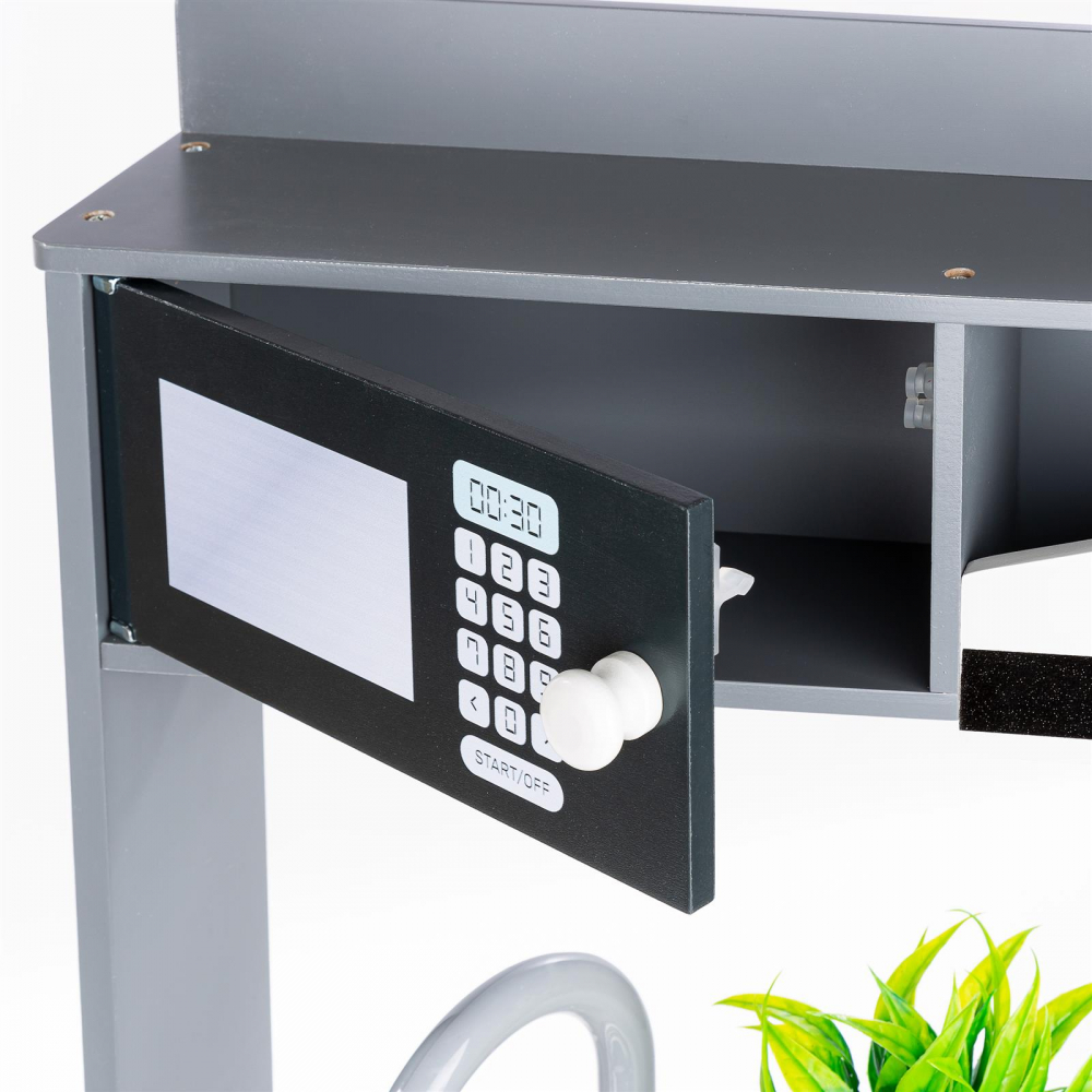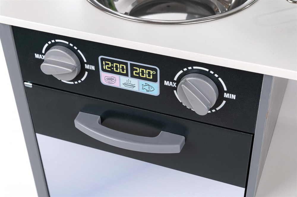 * Bucataria este echipata cu un robinet cu buton, si o chiuveta detasabila, acest lucru incurajeaza dezvoltarea abilitatilor motorii fine, coordonarea mainilor, imaginatia si inclinatia spre rezolvarea problemelor.