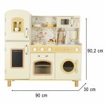 Bucatarie din lemn pentru copii, complet accesorizata, cu robinet si circuit de apa, efecte sonore si luminoase, dimensiune 90 x 30 x 90.2 cm