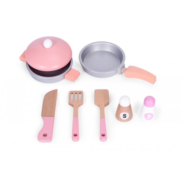 Bucataria din lemn pentru copii de la Ecotoys este un set unic care incurajeaza joaca creativa si dezvolta pasiunea culinara. Bucataria este dotata cu un cuptor, chiuveta, robinet si un set de accesorii de bucatarie, ceea ce permite recrearea realista a activitatilor de zi cu zi. Constructia din lemn masiv asigura durabilitate si siguranta in utilizare.