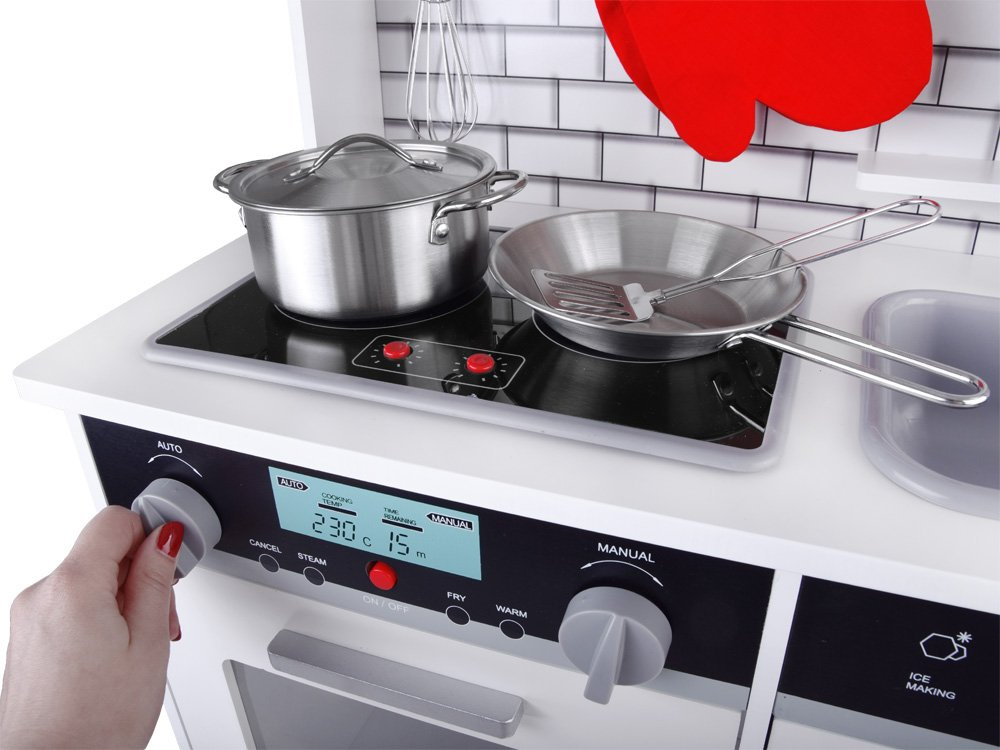 Conceputa in stil scandinav minimalist si rafinat, ea reprezinta alegerea perfecta pentru copiii care viseaza sa prepare singuri "mese delicioase", imitandu-i pe cei mari.