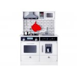 Bucatarie din lemn pentru copii cu lumini, efecte sonore si accesorii incluse, frigider cu dozator de gheata, dimensiune 92 x 65 x 30 cm