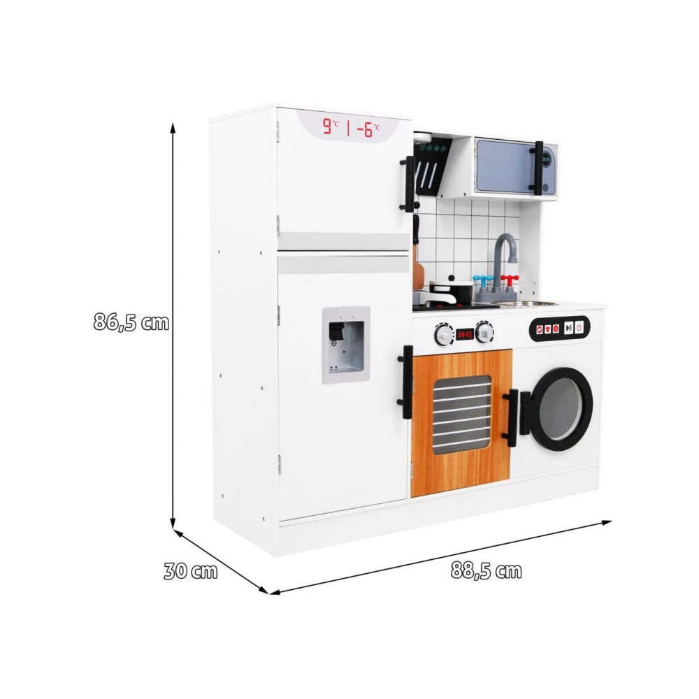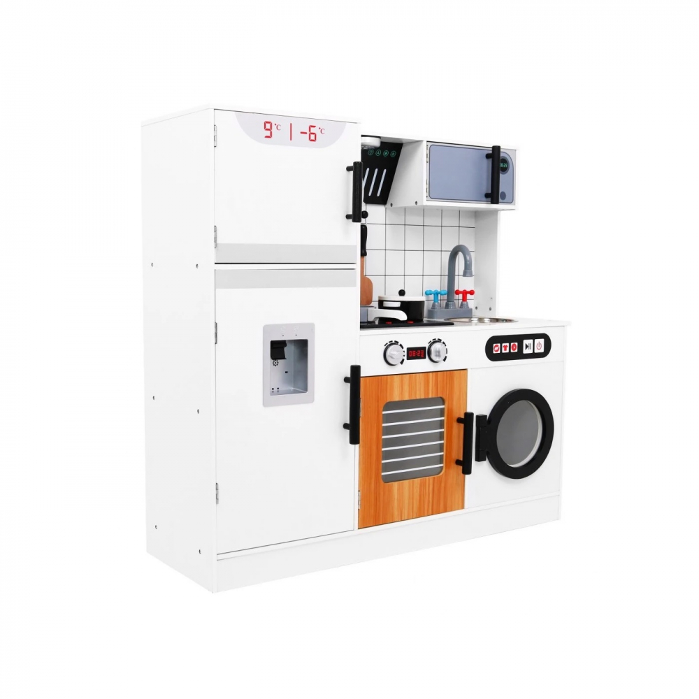 Bucatarie din lemn pentru copii cu lumini sunete si accesorii White