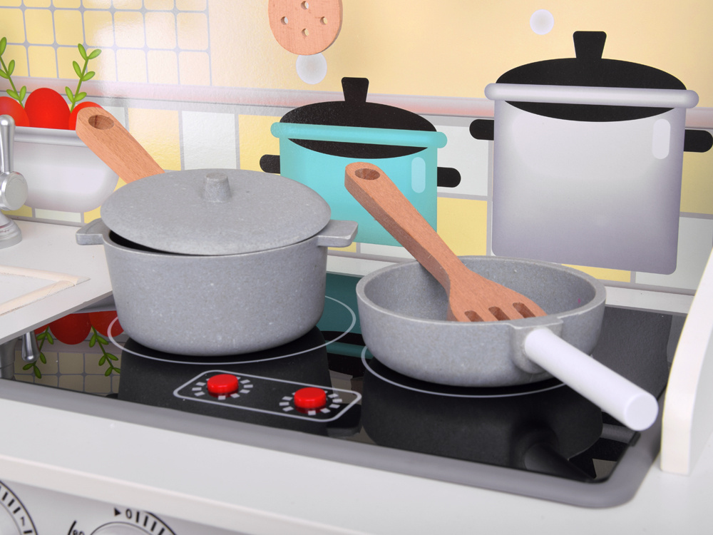 Acest set complet echipat ii permite micutului sa coaca, sa gateasca si sa depoziteze alimente, imitand cu placere adultii.