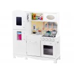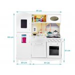 Bucatarie din lemn pentru copii cu sunete, lumini, frigider, cuptor si accesorii esentiale incluse, dimensiune 91x99x51 cm