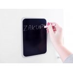 Usa superioara a frigiderului cu tabla neagra - ideala pentru a scrie meniul zilei sau lista de cumparaturi cu creta.