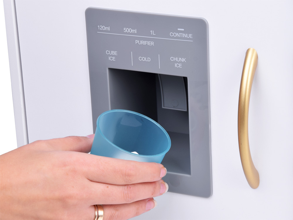 Partea inferioara gazduieste un aparat de gheata! Puneti ceasca si cuburile de gheata (imitatie) vor cadea in ea, pentru o bautura "perfect racita"!