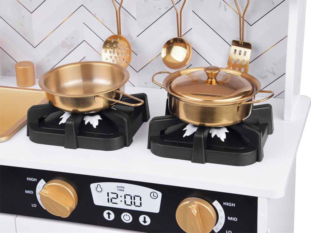 Distractia nu se va termina niciodata! Bucataria include toate accesoriile necesare pentru a simula o gospodarie bine organizata.