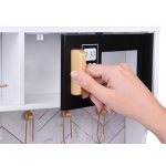 Partea superioara este o tabla de creta pe care se pot scrie meniul, lista de cumparaturi sau retetele.