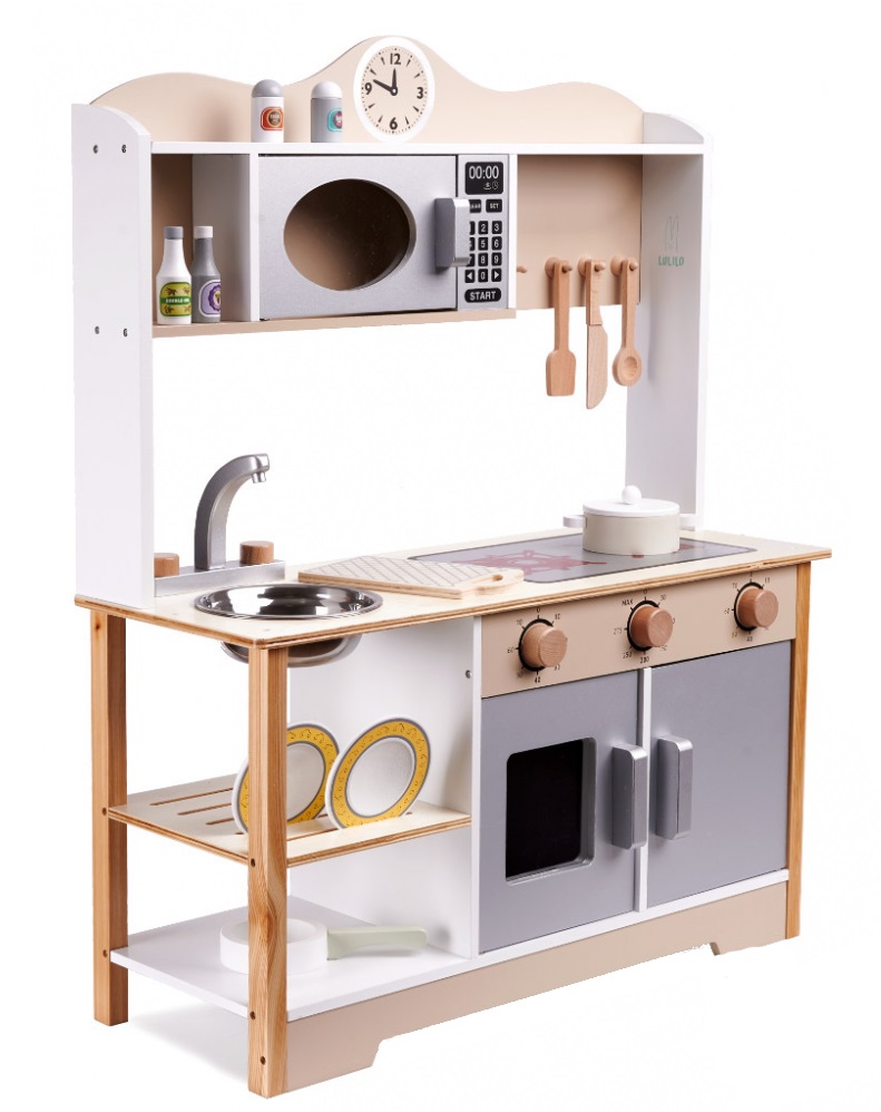 Bucataria fantastica din lemn LULILO vine cu sarcina de auto-asamblare.