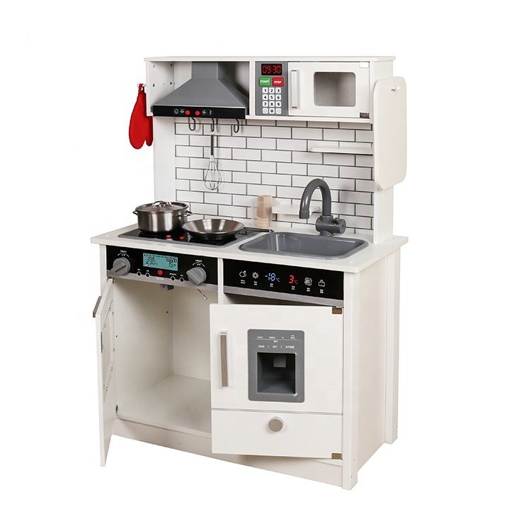 Bucatarie din lemn pentru copii, iluminata, efecte sonore, 4 accesorii incluse, design vintage, 65x97.5x30 cm, alb