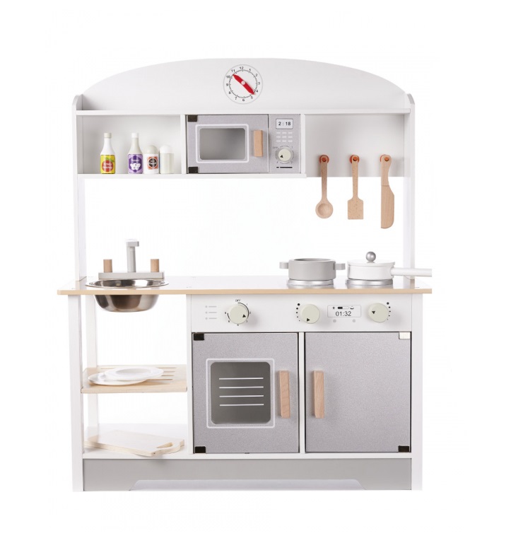 O bucatarie mare din lemn este un vis devenit realitate pentru multi copii mici. Realizat cu mare grija, incanta prin detalii si practic!