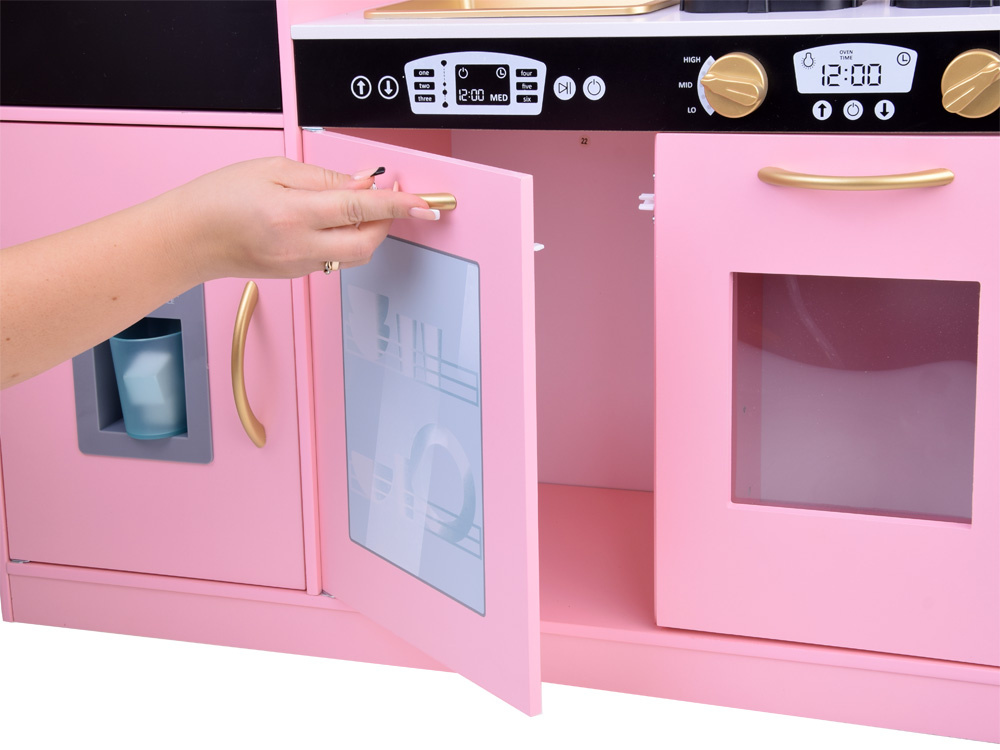 Conceputa pentru joaca in deplina siguranta, aceasta bucatarie le permite celor mici sa pregateasca mese delicioase pentru ursuleti, papusi sau chiar sa organizeze petreceri intregi.