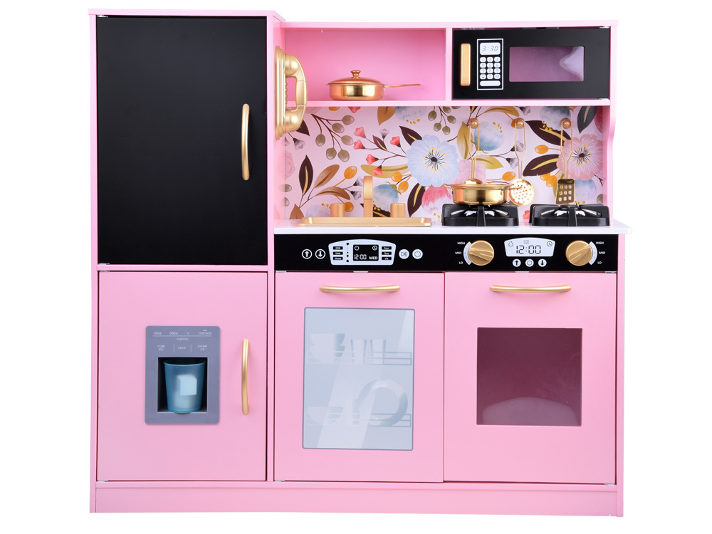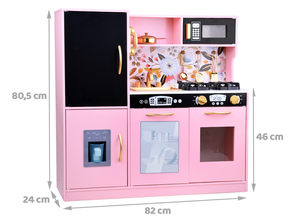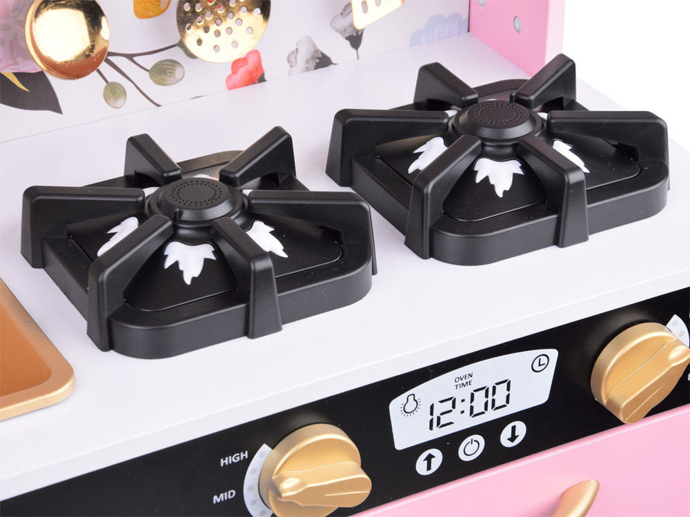 Bucatarie din lemn pentru copii Retro pink, cu efecte sonore si luminoase, dimensiune 80.5 x 82 x 46 cm, accesorii incluse