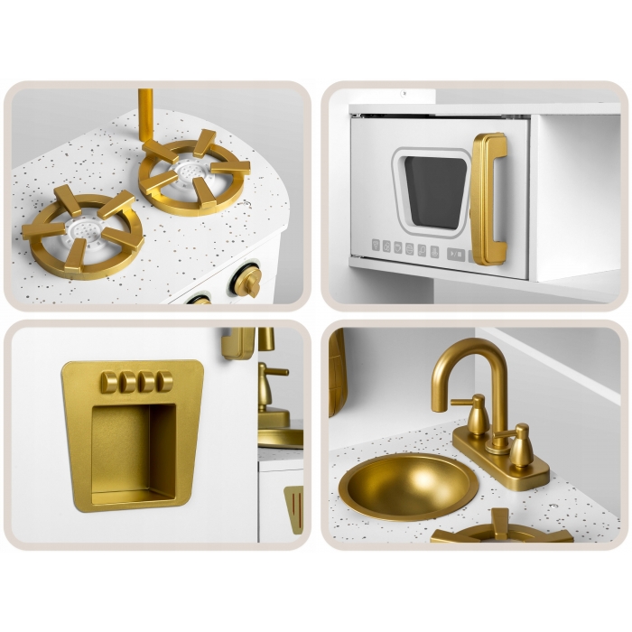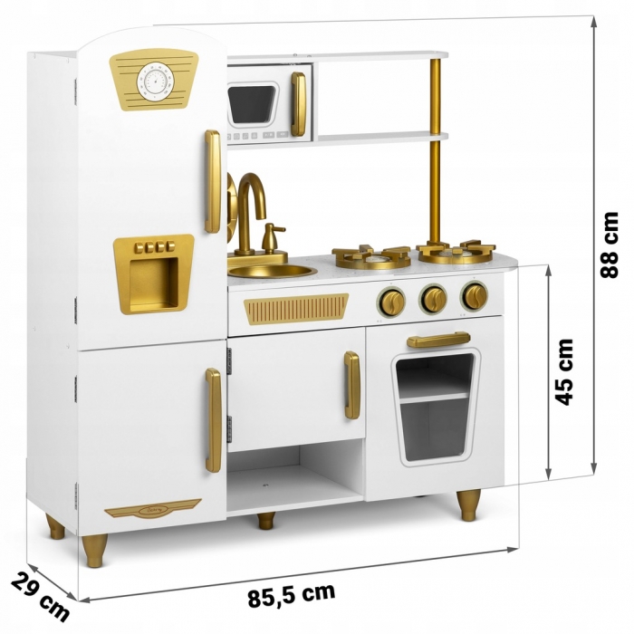 O structura solida din lemn in stil retro va face din bucatarie un decor al oricarei incaperi. Datorita elementelor interactive, copilul va invata sa fie independent, sa coopereze si isi va dezvolta creativitatea.