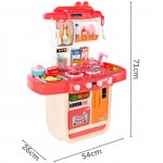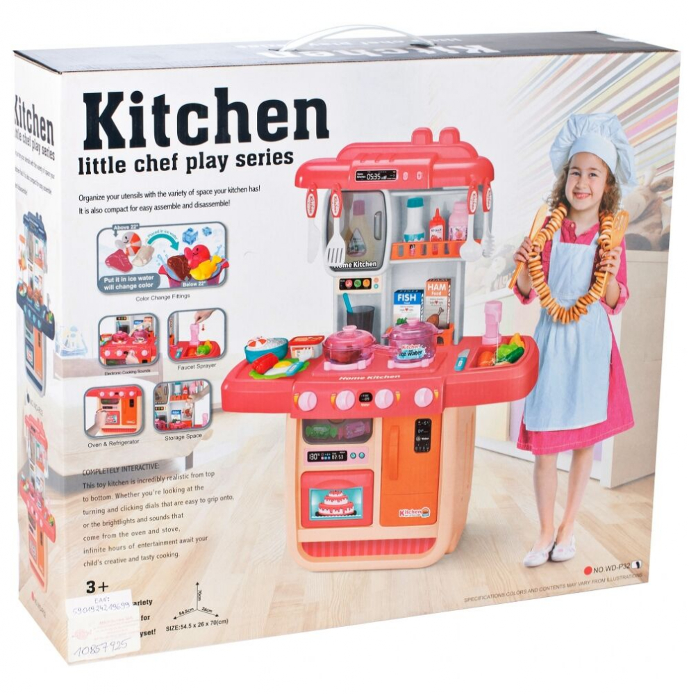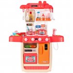 Bucataria detine 2 arzatoare care clipesc in lumina rosie, si scoate sunete asemenea arzatoarelor adevarate;