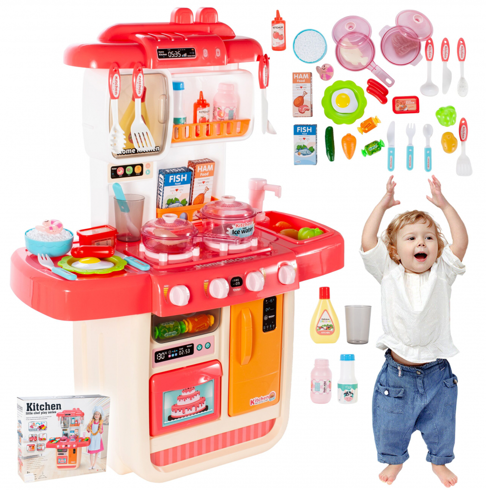 Bucatarie electronica pentru copii, MalPlay, cu robinet de apa functional, accesorii esentiale incluse, dimensiune 26 x 54 x 71 cm, Little Chef