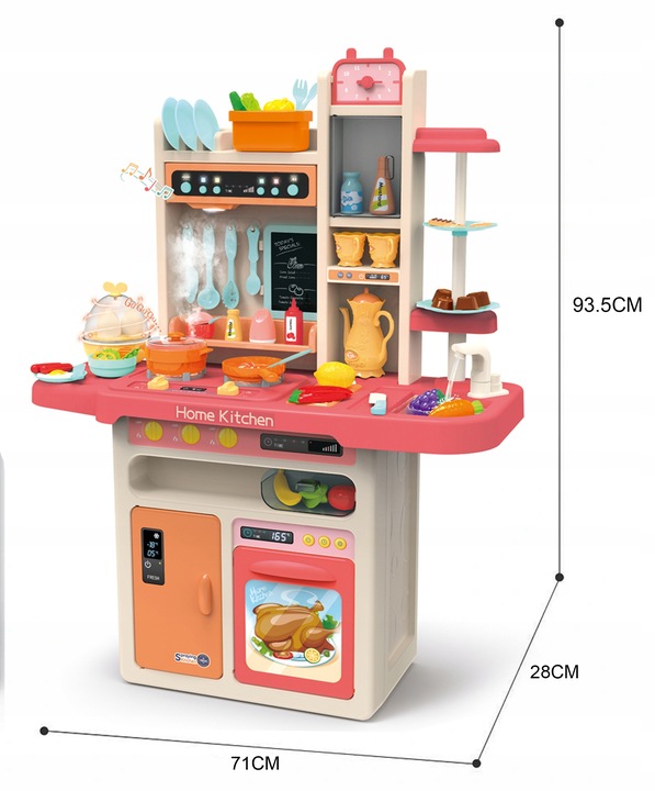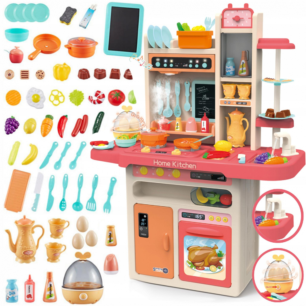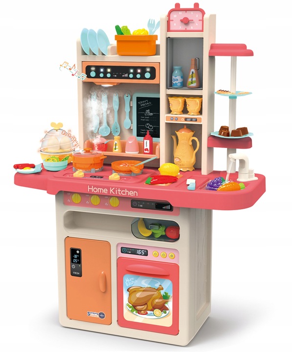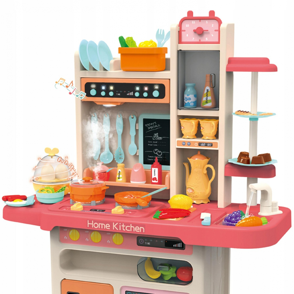 Bucatarie interactiva cu abur lumini sunete 98 cm si 65 de accesorii incluse Pink