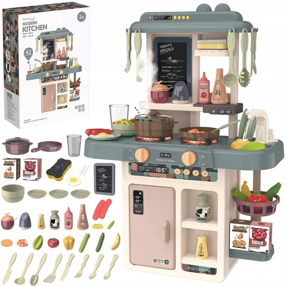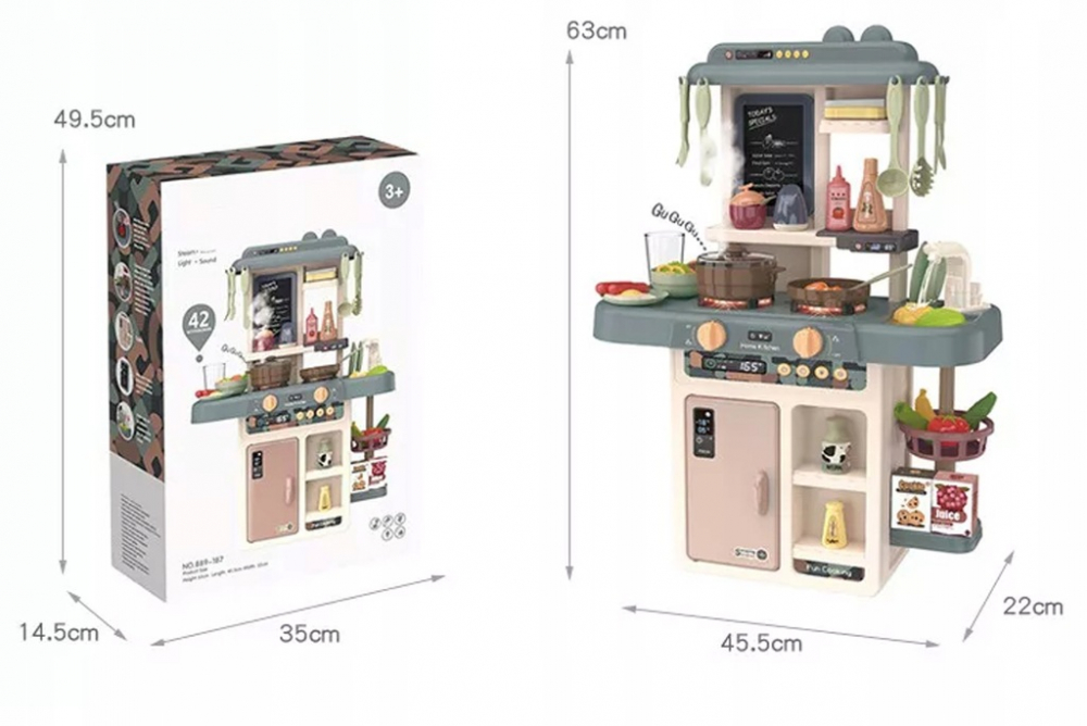 Bucataria vine echipata cu 42 accesorii distincte, necesare oricarui micut bucatar:
