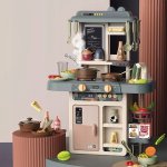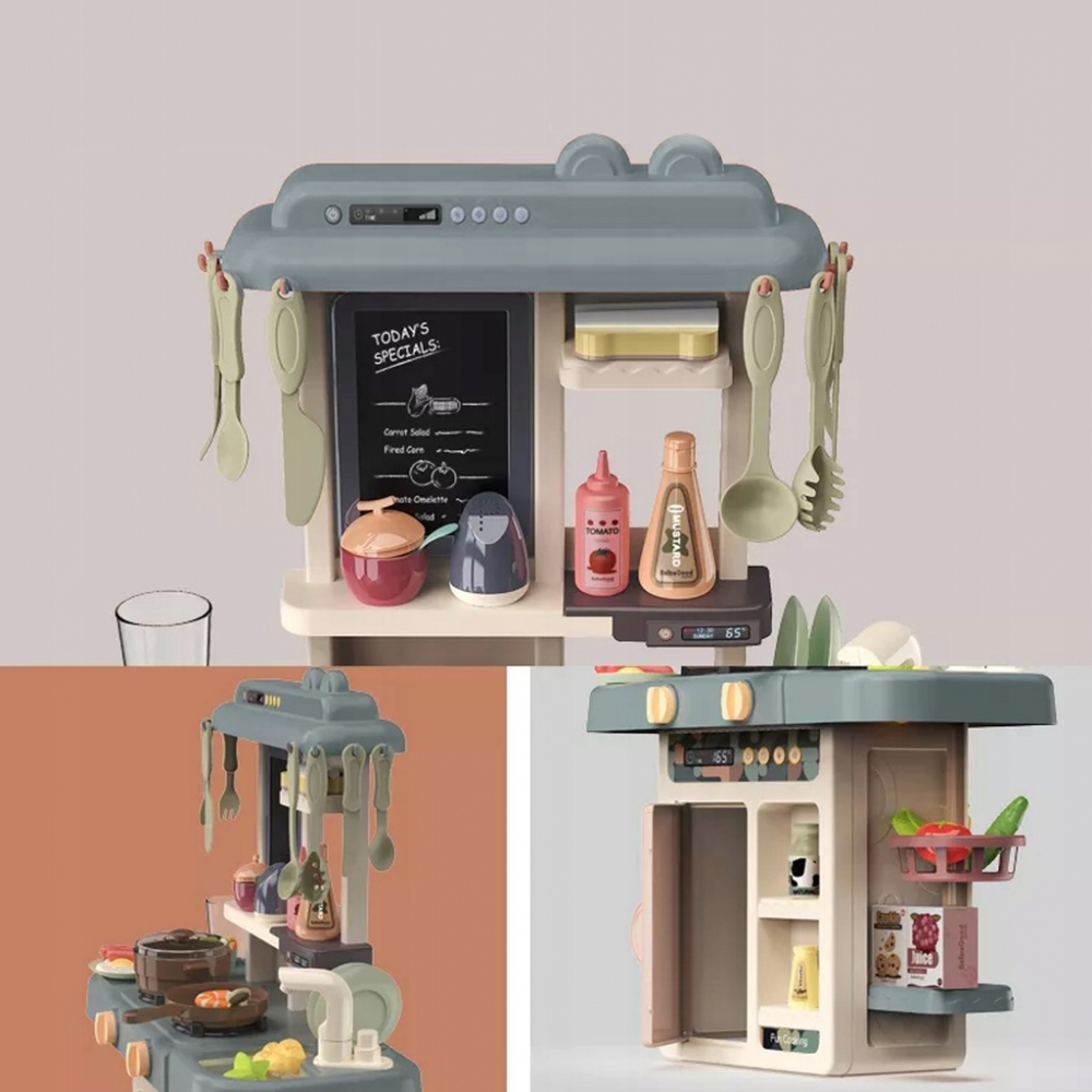 O bucatarie uimitoare cu multe functii, cum ar fi aburul rece, apa care curge de la robinet, efectele luminoase si sonore va vor incanta cu siguranta copilul, garantand ore intregi de distractie.